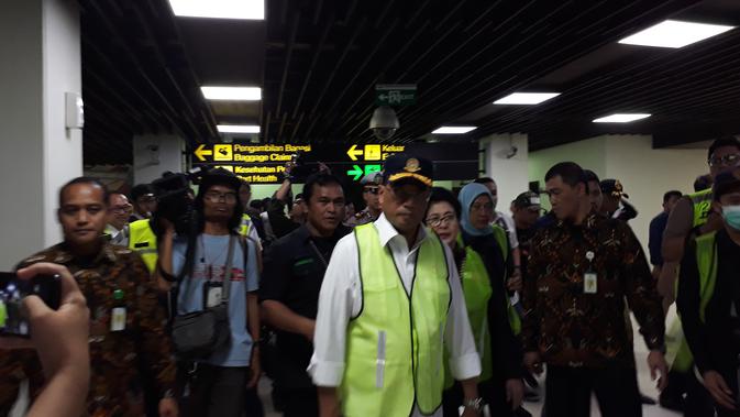 Seperti diketahui, Menhub Budi Karya Sumadi dan Menteri Kesehatan Nilla Moeloek, lakukan tinjauan di Bandara Internasional Soekarno Hatta, Kota Tangerang. Bukan hanya Bandara Soetta, rombongan sebelumnya juga mengecek Stasiun Gambir dan setelahnya menuju Terminal Kampung Rambutan. (Pramita Tristiawati)